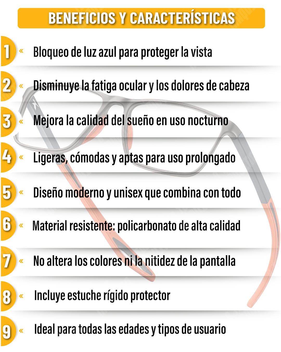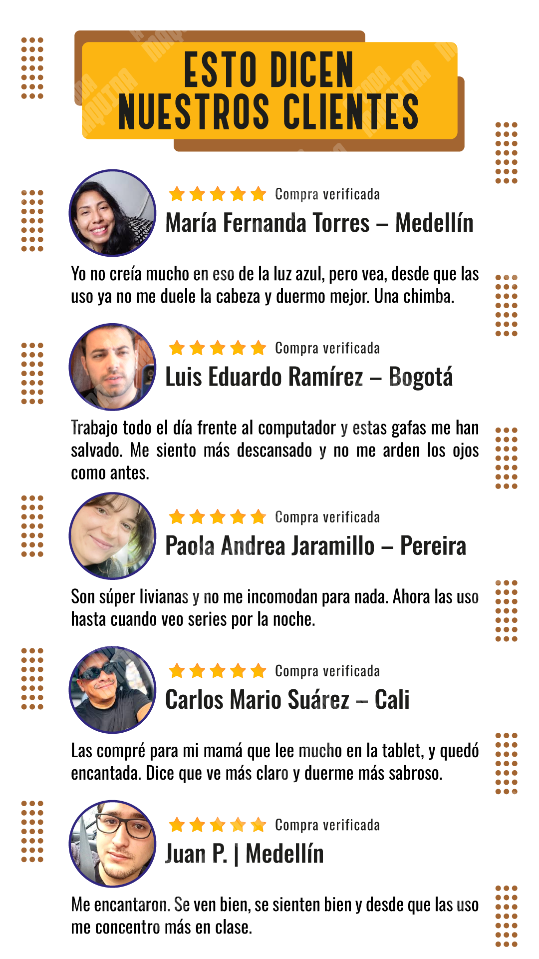 ★★★★★Soy programador y pasaba 10 horas frente a pantallas. Las gafas redujeron mi fatiga visual en pocos días. Excelente inversión.